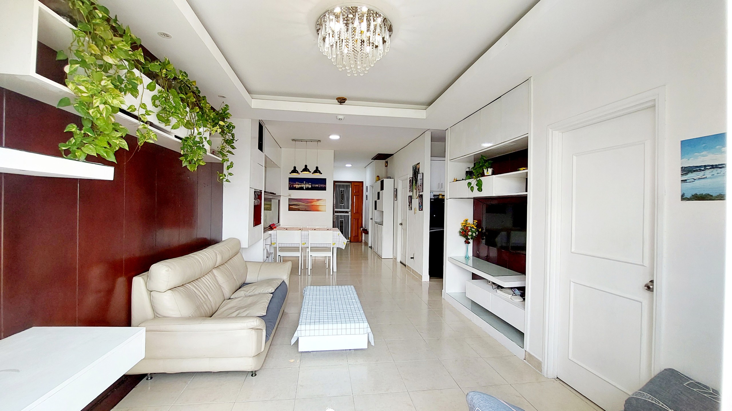 Full nội thất đẹp. Thiết kế tủ âm tường rất nhiều, căn hộ nhìn rất ngăn nắp, gọn gàng. Chỉ cần xách vali vào ở. Khu dân cư sát bên làng đại học.. ( ĐH Kinh Tế, Văn Hiến..)
